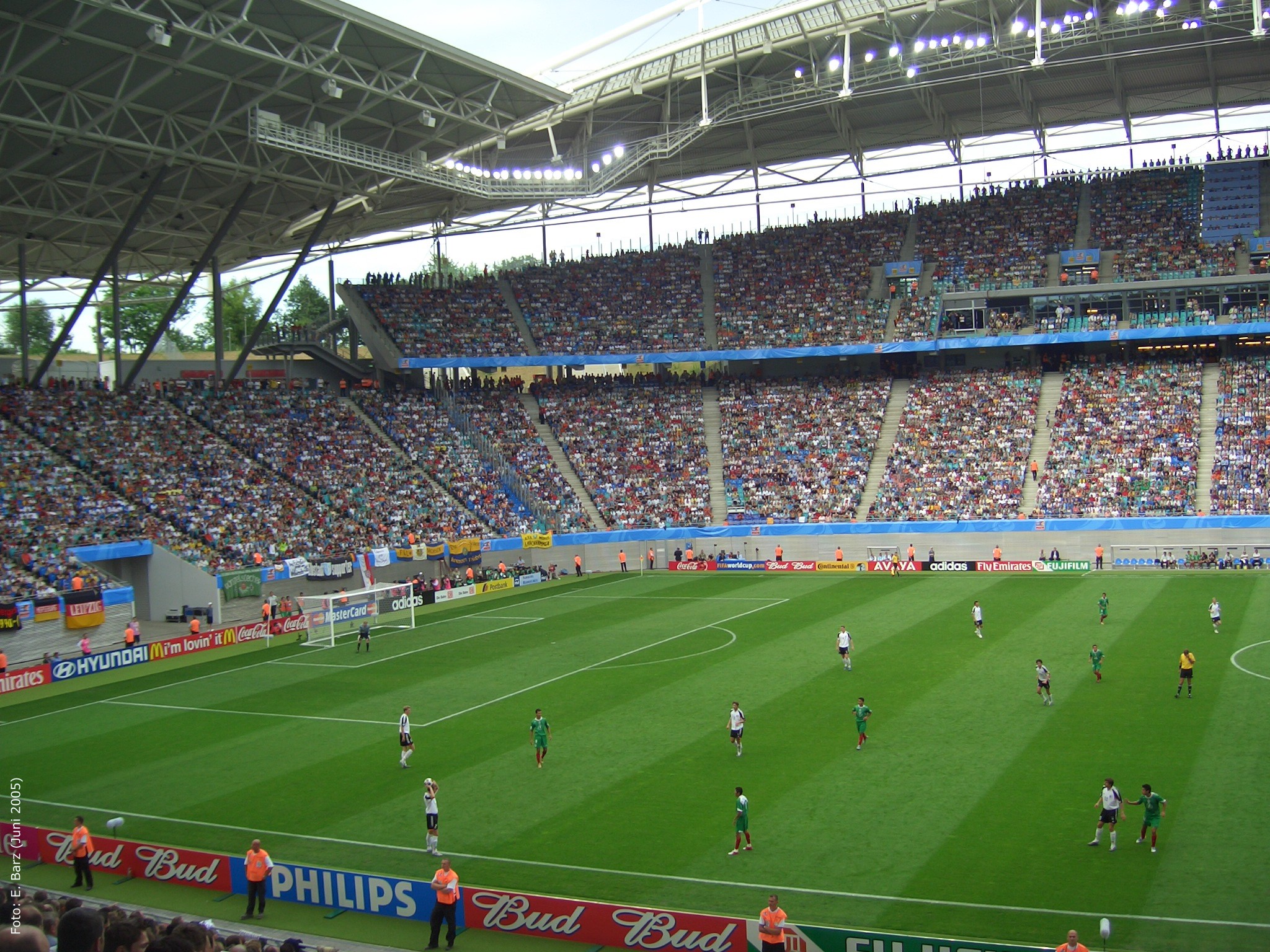 Als einzige Stadt im Osten Deutschlands wird Leipzig WM-Spiele zu sehen bekommen. Die sächsische Stadt mit ihrer knappen halben Million Einwohner kann auf eine große Fußballtradition verweisen. Der DFB wurde hier am 20. Januar 1900 gegründet. Und auch der erste Deutsche Meister, der VfB Leipzig, stammt aus der Stadt. |